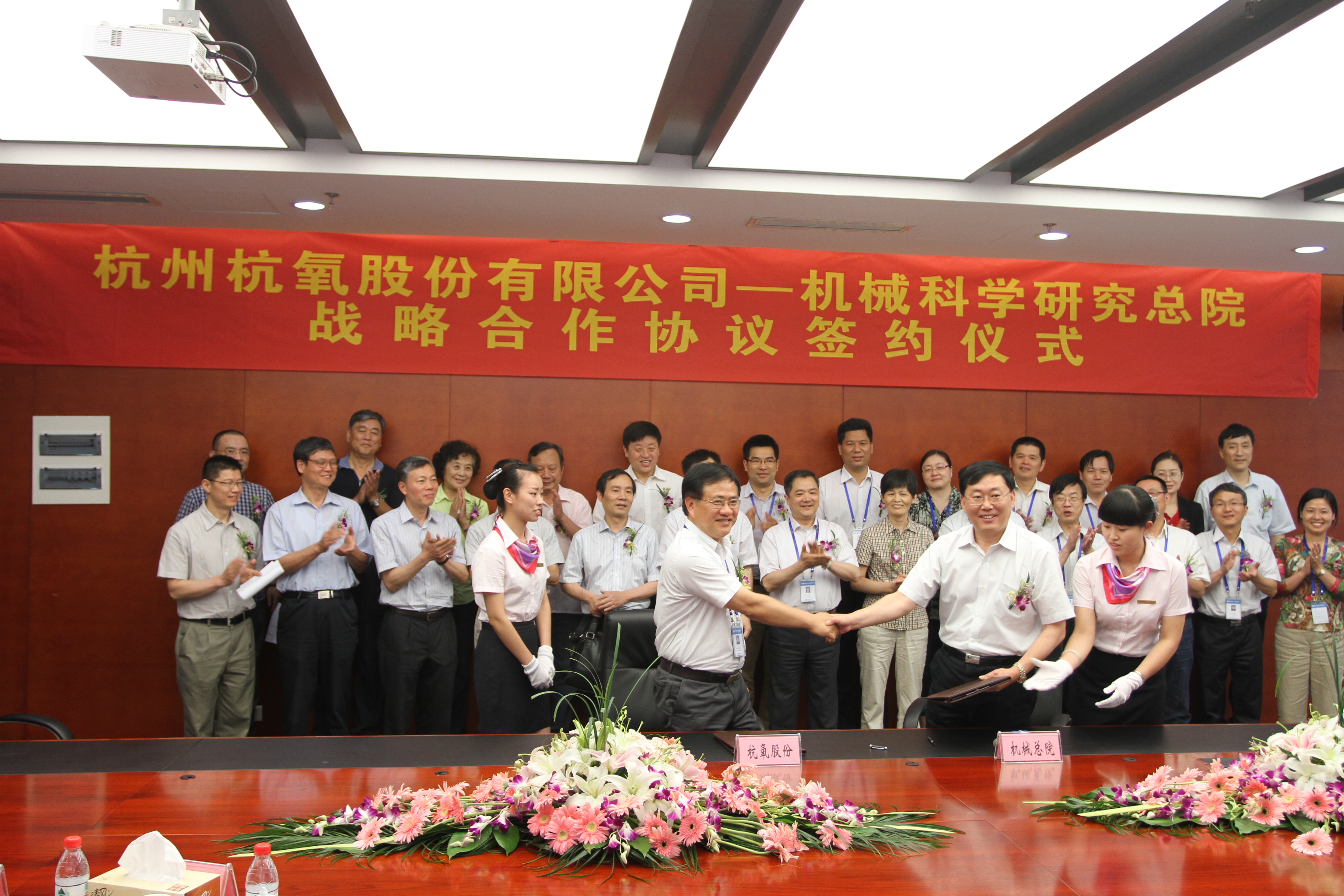 機械科學研究院浙江分院有限公司與杭州杭氧股份有限公司自2008年杭氧集團開始遷擴建項目開始合作,至今已為杭氧集團成功開發非標成套裝備及生產線二十多臺套。雙方簽訂《戰略合作協議書》,將進一步促進雙方全面合作,充分發揮總院裝備制造業綜合優勢支撐杭氧集團長足發展。